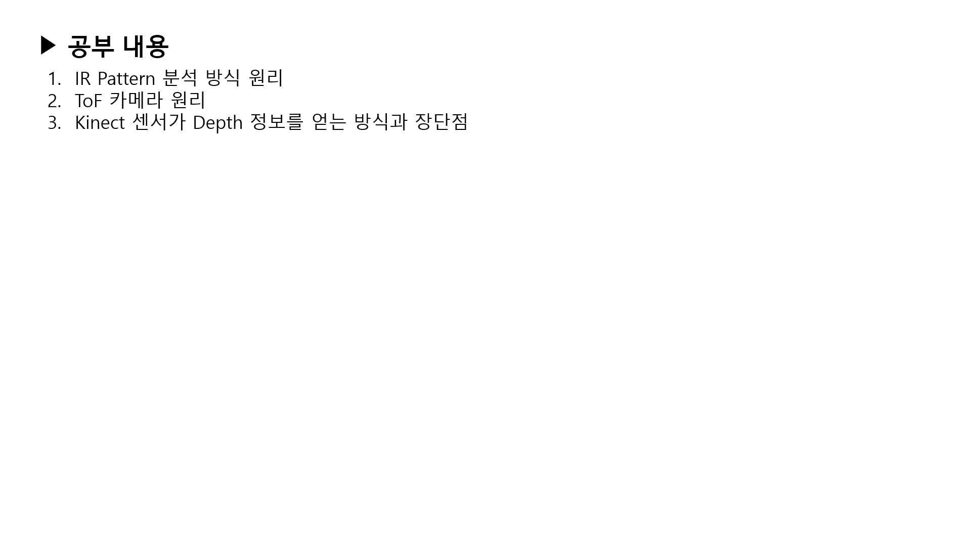 해당 주차에는 저번주에 이해가 부족했던 ToF와 IR 패턴 분석 방식에 대해 더 자세히 공부하고 발표를 했다.