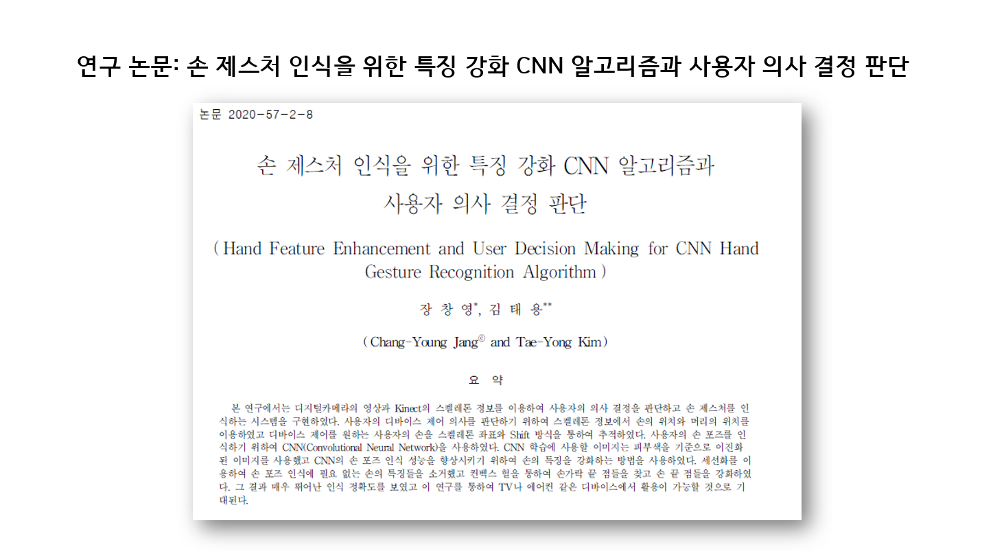 Kinect를 이용하기 전에 관련 연구 논문을 읽으며 공부를 해보고 있다. 지금 읽고 있는 논문은 손 제스처 인식 관련 연구 논문이다. 장창용, 김태용. (2020). 손 제스처 인식을 위한 특징 강화