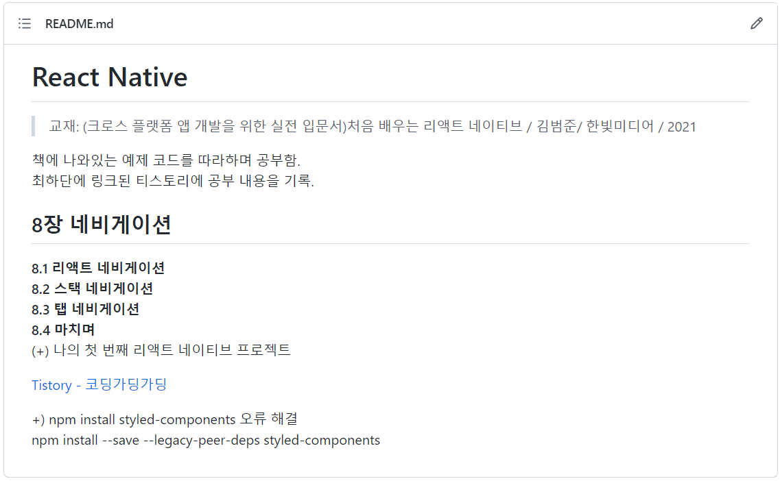 8장은 네비게이션에 대한 내용이다. 책에 나온 코드를 따라한 후 깃허브에 올려뒀다.