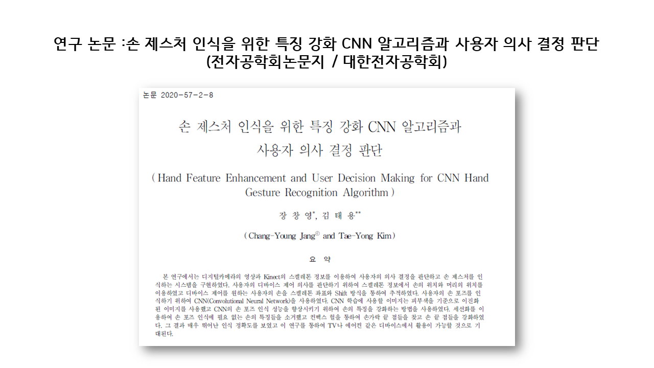 Kinect를 이용하기 전에 관련 연구 논문을 읽으며 공부를 해보고 있다. 지금 읽고 있는 논문은 손 제스처 인식 관련 연구 논문이다. 장창용, 김태용. (2020). 손 제스처 인식을 위한 특징 강화