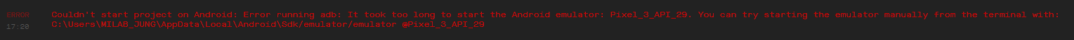 expo init으로 프로젝트 만들고... github랑 연결해서 push랑 pull 해주고... 그게 다인데 안드로이드 스튜디오 실행이 잘 되나 확인해보려는 단계에서 바로 막혔다. 심지어 처음 보는 에러다...