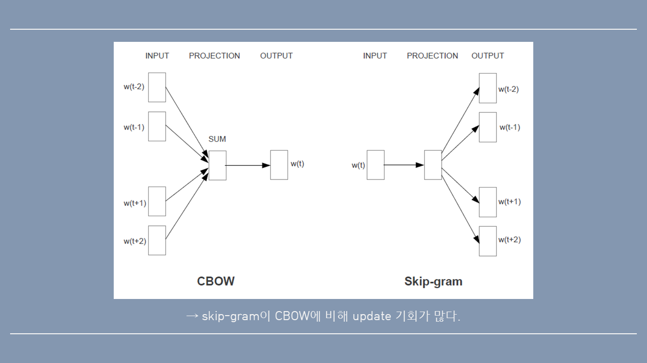 CBOW와 skip-gram을 비교하며 공부해보았다.