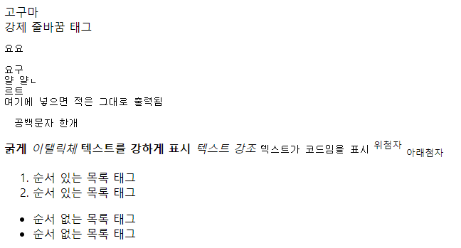 세 번째 시간에는 텍스트 강조 태그, 목록 태그, 이미지 태그, 링크 태그 등을 배웠다.