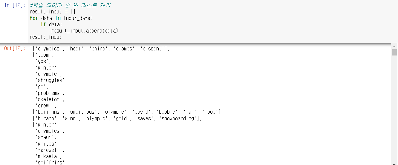 전처리 된 데이터 중에서 빈 리스트를 제거해주는 작업이다.