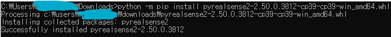 python -m pip install pyrealsense2-2.50.0.3812-cp39-cp39-win_amd64.whl