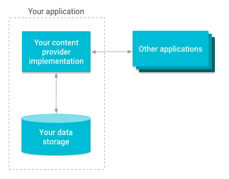 - Android 문서에 따르면 Content Provider는 파일 시스템, SQLite 데이터베이스, Jetpack Room 또는 웹에 저장된 모든 종류의 영구 데이터를 여러 앱 간에 공유할 수 있도록 함.