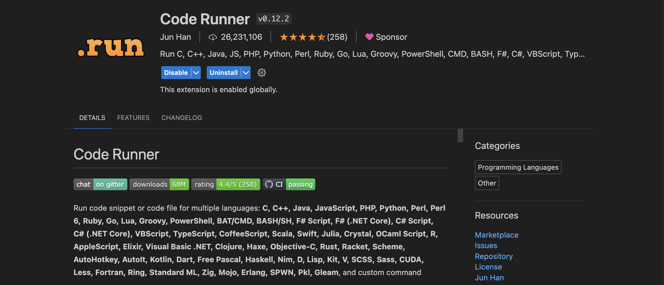 그리고 바로 백준 문제를 풀어보려고 했는데 입력값 받아오는 부분이 제대로 안 되는 것 같아서 일단 Java로 풀었다. 그리고 나중에 확인해보니 코드에서 우클릭 -> Run Code로 실행하면 괜찮고, 우측상단에 재생버튼처럼 생긴 Run 버튼으로 하면 오류가 나는듯 했다...? 나중에 다시 한 번 원인을 찾아봐야할 것 같다.