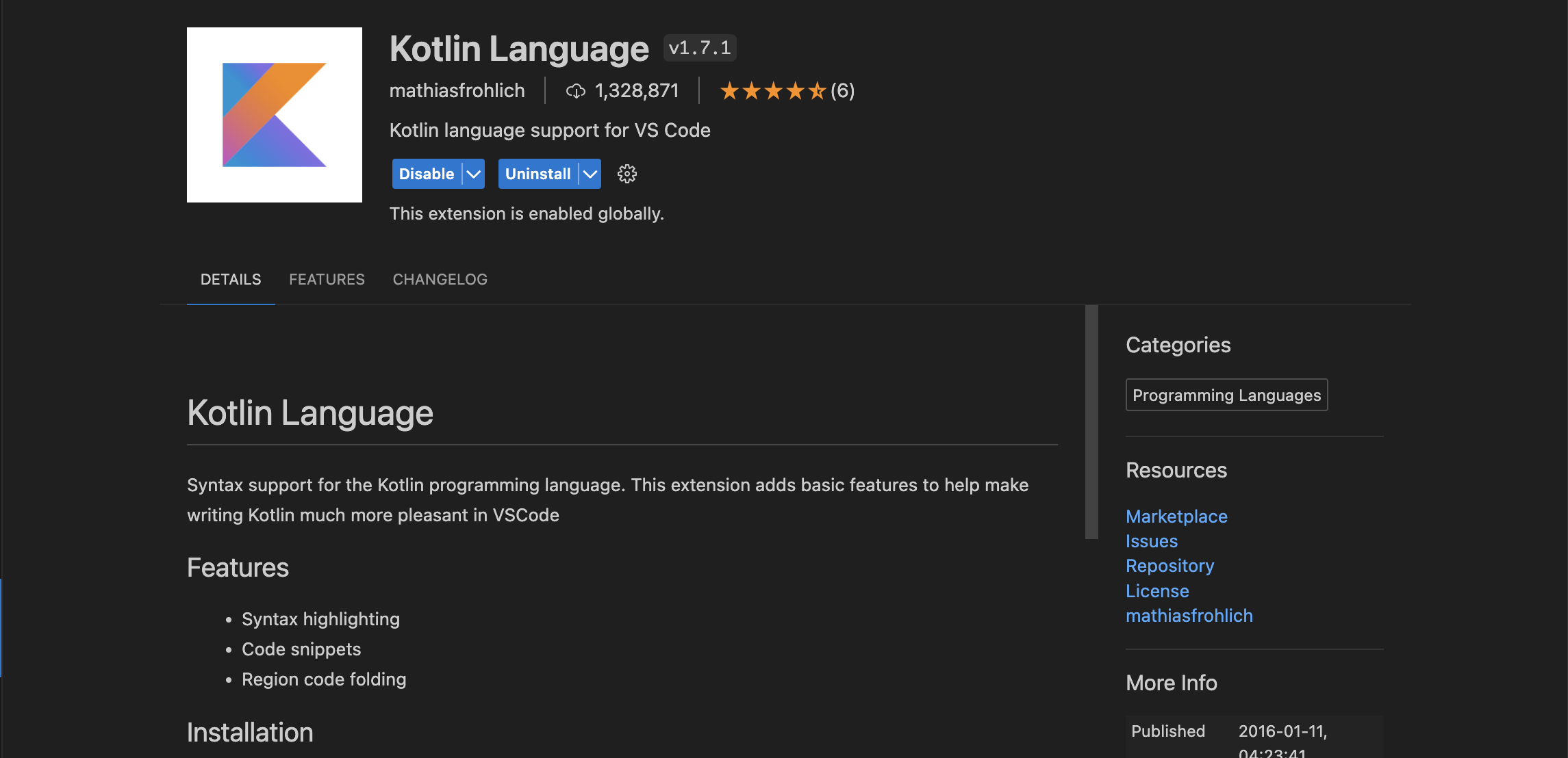 Code Runner는 이전에 설치한 적이 있어서 Kotlin Language만 추가로 설치해줬다.