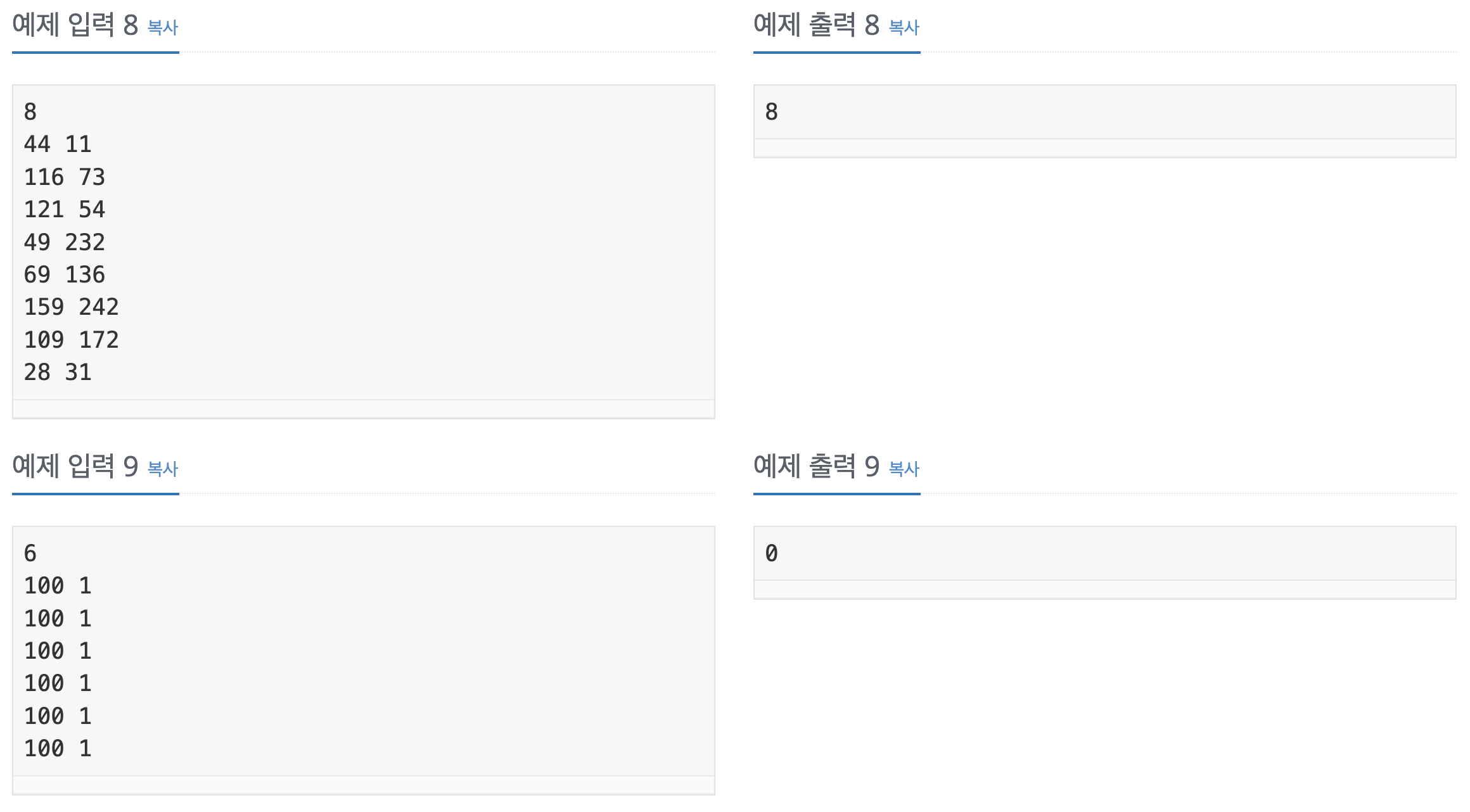 이 과정을 통해 최대한 많은 계란을 깨는 것이 앞으로 인범이가 매일 아침마다 풀게 될 퍼즐이다. 그리고 유현이는 인범이가 찾은 답이 정답이 맞는지 확인해주려고 한다. 일렬로 놓인 계란들의 내구도와 무게가 차례대로 주어졌을 때 최대 몇 개의 계란을 깰 수 있는지 알아맞춰보자.