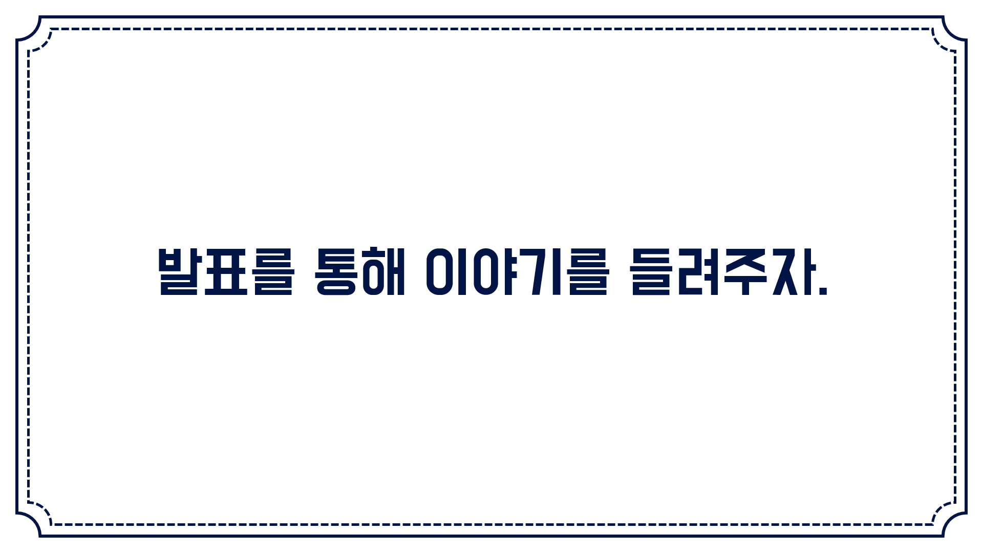 이 날의 발표 주제는 강사 한 분을 정해서 각자 그 강사의 발표, 강연 방식을 따라 발표하거나, 그 강사의 발표 방식에 대해 설명하는 것이었다. 나는 설민석 강사님으로 뽑혔는데, 이 발표를 준비하면서 설민석 강사님의 강연 방식에 대해 다시 살펴보게 되었다. 당연하겠지만 나와 정반대적인 성향의 발표 방식으로 강연을 하셨다. 연기하듯이, 나의 이야기를 상대에게 해준다는 느낌으로 발표를 하셨다. 지금까지 나의 발표 방식은 정보 전달 위주였다. 정보 전달 위주의 발표는 사실 청자의 집중을 이끌어내기 힘들고 지루하다. 그리고 무언가 말하고자 하는 결론이 없어서 발표를 듣고 난 후에도 기억에 남는 게 없을 수 있다. 이런 부분에서 내 발표의 문제점이 무엇인지 되짚을 수 있었고, 앞으로 말하기를 할 때에도 이런 무언가 결론이 있는 말하기를 하기 위해 신경써야겠다는 생각을 하게 되었다.