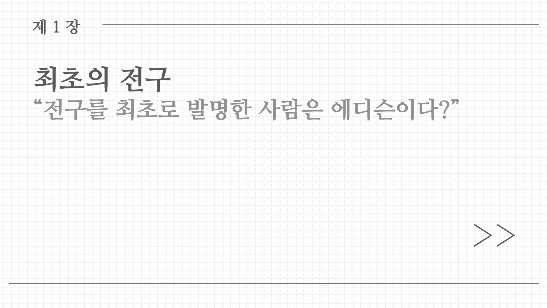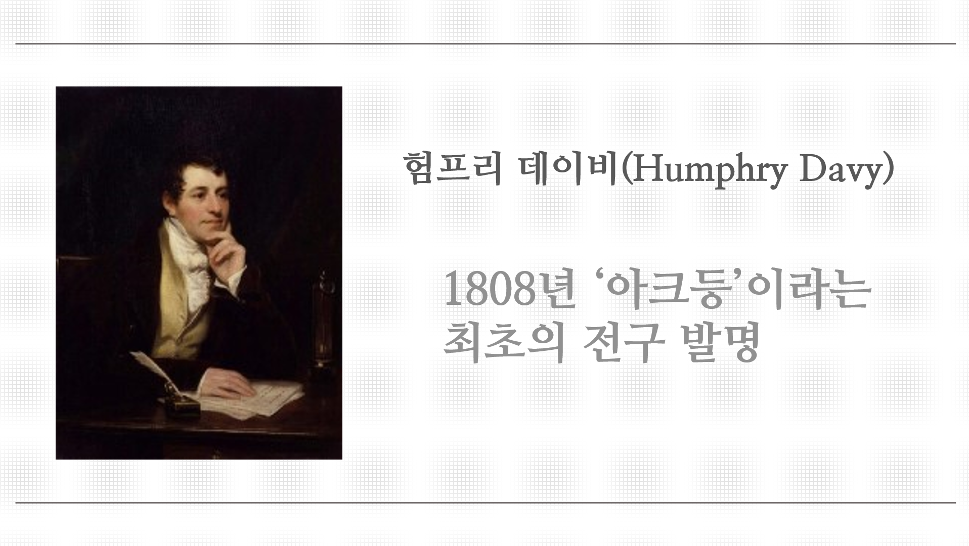 저는 이번 발표에서 전구의 역사에 대해 이야기 하려고 합니다. 다들 전구하면 어떤 인물이 떠오르시나요? (대답 듣고) 아마 대부분 에디슨을 떠올리실 텐데요. 에디슨과 전구 사이의 숨은 역사에 대해서 이야기를 해드리려고 합니다. 처음에 할 이야기는 최초의 전구에 대한 이야기입니다. 전구를 처음 발명한 사람이 에디슨이라고 알고 있는 사람이 많을 텐데 사실은 에디슨보다 이전에 전구를 발명한 사람이 있습니다. 오히려 에디슨이 전구 특허를 냈을 때는 이미 스무 명 이상의 사람들이 비슷한 전구를 발명했다고 합니다. 최초의 전구는 1808년 험프리 데이비라는 영국 화학자에 의해 발명되었다고 합니다. 그렇다면 왜 우리는 에디슨을 최초의 전구 발명가로 기억하고 있을까요? 데이비의 아크등은 파리의 콩코드 광장에 가로등으로 설치하고, 미국과 유럽에서 실험을 진행하기도 했는데 이 아크등은 빛이 너무 강하고 빨리 타버려서 실용성이 떨어졌다고 합니다. 이런 문제를 보완하고 실용화한 전구가 바로 에디슨이 만든 전구인데, 이 전구가 현재 사용 중인 전구의 시작형태라고 할 수 있는 전구라서 아마 에디슨을 최초의 전구 발명가로 기억하는 것이 아닐까 하고 생각합니다. 정리를 해보자면, 1808년에 험프리 데이비가 최초의 전구인 아크등을 발명하고, 1879년에 에디슨이 아크등의 문제점을 보완한 전구를 발명합니다. 1년 뒤 그 전구를 조금 더 보완하여 수명을 늘렸고, 1910년 윌리엄 클리지가 현재 전구에 이용되는 필라멘트를 발명함으로써 전구는 더 밝고 수명도 길어지게 되었습니다. 다음은 전구를 이용해 가로등을 세운 이야기를 하겠습니다. 가로등을 설치할 때 전기를 전달하기 위해 직류를 이용하느냐, 교류를 이용하느냐를 놓고 에디슨과 테슬라라는 발명가가 대립을 하게 됩니다. 에디슨과 테슬라가 직류와 교류에 대해 대립하는 모습을 ‘커런트 워’라는 영화의 한 장면을 통해 살펴 보겠습니다. 여기 베네딕트 컴버배치가 에디슨 역, 앞쪽에 앉아있는 사람이 테슬라 역입니다. 0:55~1:24 이렇게 테슬라는 교류에 대한 의견을 피력했지만 에디슨은 직류 방식에 대한 고집을 꺾지 않고 그 의견을 무시했습니다. 하지만 이후 경쟁사에서 교류 방식을 이용한 전기 전달로 에디슨을 앞지르게 됩니다. 그런 상황이 되자 테슬라는 다시 한번 에디슨에게 교류에 대한 의견을 이야기합니다. 1:55~2:35 하지만 에디슨은 여전히 직류를 고집하고, 약속했던 돈도 주지 않으려고 합니다. 에디슨이 테슬라의 천재력을 질투?했기 때문이라는 말도 있는데요. 이렇게 테슬라는 에디슨의 회사에서 나오게 되고, 에디슨은 경쟁사 웨스팅 하우스의 교류 전기의 위험성을 알리며 자신의 직류 방식이 더 뛰어남을 증명하려 했습니다. 이어서~3:07 하지만 사람들은 당장 드러나지 않는 위험보다 싸고 효율적인 교류 방식으로 몰리게 되었습니다. 에디슨은 교류 전기의 위험을 증명하기 위해 교류 전기로 동물을 죽이는 공개 실험을 하고, 사형집행에 교류 전기 의자를 사용할 수 있도록 만들어주기까지 했습니다. 하지만 교류 전동기의 위험을 낮출 방법을 테슬라가 알고 있었고, 웨스팅 하우스는 그걸 이용하여 다시 판세를 뒤집었습니다. 4:20~5:20 결과적으로 전기 전달에는 테슬라의 교류 전동기를 사용하게 되었습니다. 사실 테슬라가 에디슨보다 더 천재적이라는 말도 있는 만큼 정말 대단한 발명을 한 사람인데, 잘 알려지지는 않은 것 같아서 이 이야기를 들려드리고 싶었습니다.