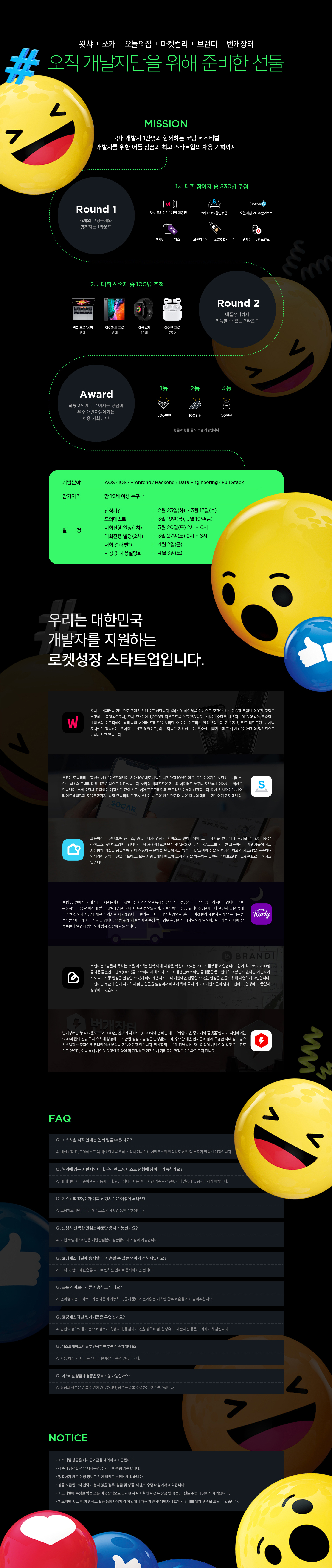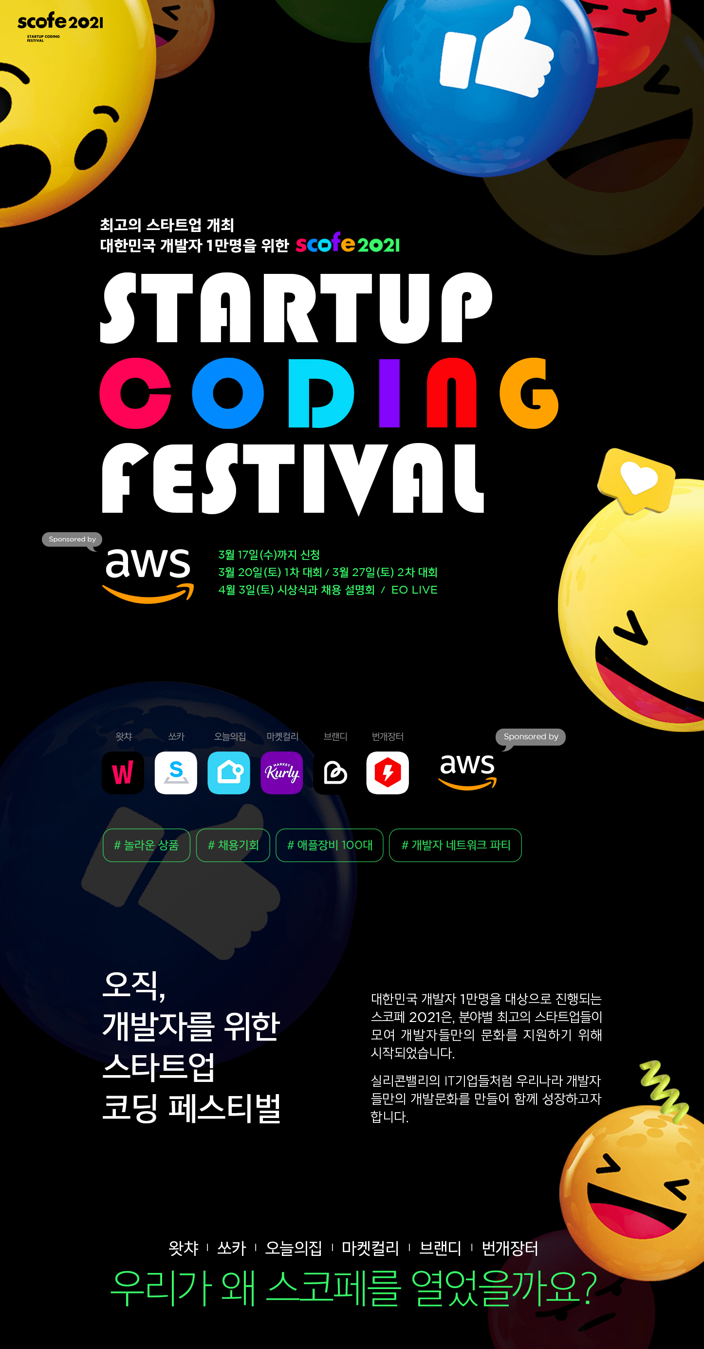 대한민국 최초로 진행되는 'Startup Coding Festival 2021' 분야별 최고의 스타트업들이 모여 코딩 페스티벌을 개최합니다. 로켓성장하고 있는 스타트업의 개발 문화를 경험할 수 있는 이번 축제에 여러