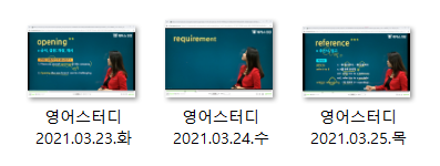 | [영어스터디] 2021.04.01.목~04.04.일 - 강의 수강 기록 (1) | 2021.04.26 |