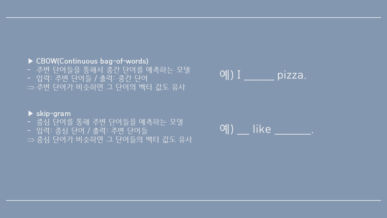 CBOW와 skip-gram을 비교하며 공부해보았다.